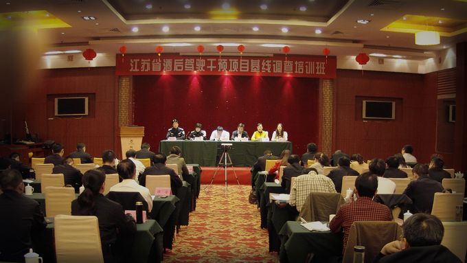 4月9日至10日,由江苏省交巡警总队和省疾控中心主办扬州市疾控中心承办的“关爱生命,拒绝酒驾”文明工程酒后驾驶干预项目基线调查培训班在扬州宾馆召开,来自全省6个项目点约70名交巡警和疾控中心学员参加了本次培训。会议开幕式由江苏省疾控中心张凤云副所长主持,扬州市疾控中心金武副主任和扬州市交巡警支队姜国庆副支队长致欢迎词,江苏省公安厅交巡警总队陈卫副处长、国际酒精政策中心中国区主任俞学群、江苏省疾控中心朱凤才副主任出席开幕式并作重要讲话。