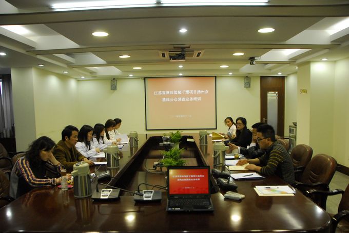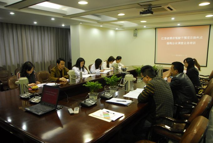 2014年4月11日下午,扬州市疾病预防控制中心健康教育所在中心四楼会议室召开了江苏省酒后驾驶干预项目扬州监测点基线公众调查培训会,由市健康教育所、扬州环资学院实习生共12名调查员参加了会议。