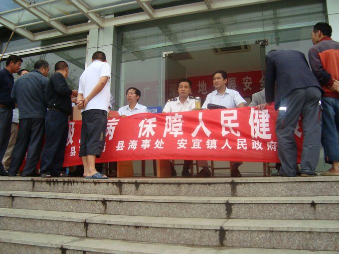 6月21-26日,宝应县血地办联合县卫生局、县交通局、安宜镇政府、地方海事处等部门在宝应船闸举行血防宣传周大型宣传活动。