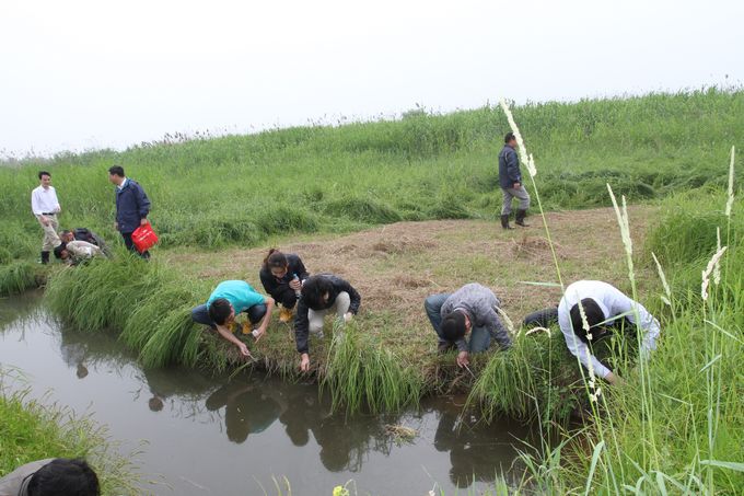 工作人员首先分组乘船走进芦苇滩实地进行3小时钉螺调查,然后集中观看防治知识科教片和血吸虫病防治展牌,学习国务院《血吸虫病防治条例》、阅读报告文学《新民滩的悲欢》,最后进行理论考试,合格率达100%。