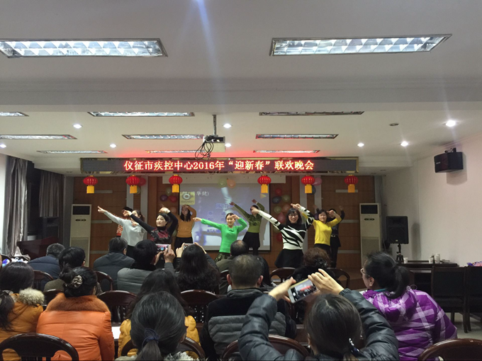 2月2日晚,仪征市疾控中心中心五楼会议室大红灯笼高高挂起,呈现一派喜庆欢乐的气氛:一场由中心全体职工自编自导自演的“2016年迎新春联欢晚会”在这里热闹上演,以喜迎新春佳节的到来。市卫计委方久权副书记一行4人与大家共贺新春。