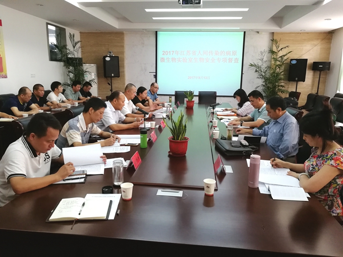 9月13日下午,省卫计委监督处副处长承明华一行4人,在扬州市卫计委副书记王林等人陪同下,对江都疾控人间传染的病原微生物实验室生物安全工作进行了专项督查。