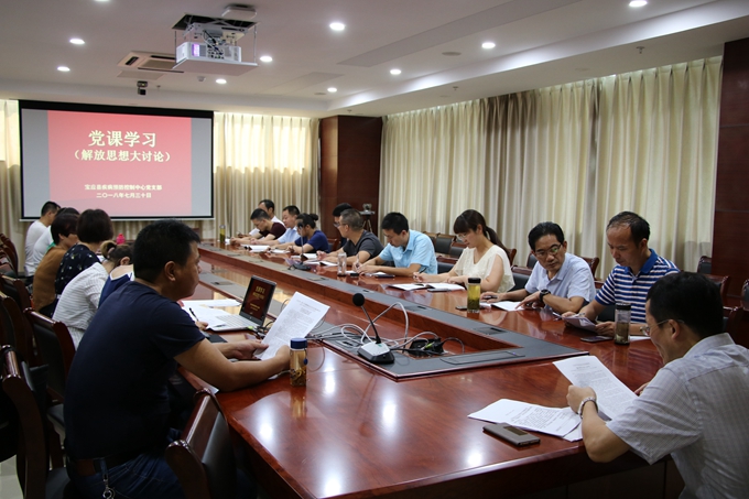 7月30日下午,宝应县疾控中心在四楼会议室召开解放思想大讨论党课学习,该中心党支部书记梁永春主持,中心近20名党员同志参加会议。