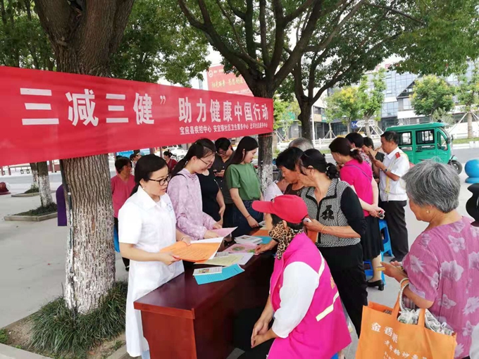 9月17日,宝应县疾病预防控制中心联合安宜镇社区卫生服务中心、北河社区服务中心在北河公园广场,开展2019全民健康生活方式月宣传活动。