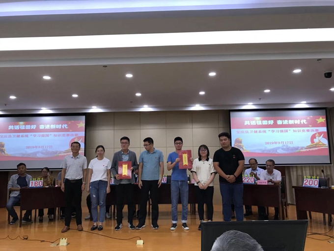 近期,宝应县疾控中心任涛、刘韵、王涛三位年轻同志组成的代表队参加了全县卫健系统“学习强国”知识竞赛,通过9月上旬的初赛后进入了决赛,9月17日下午,经过与其他城区5支参赛队伍激烈紧张的角逐,宝应县疾控中心代表队荣获“学习强国”知识竞赛二等奖,同时,中心驾驶员朱顺华同志荣获“学习强国“的学习达人的荣誉称号,展现了宝应疾控人良好的学习风貌。活动有近200名基层党(总)支代表观摩。