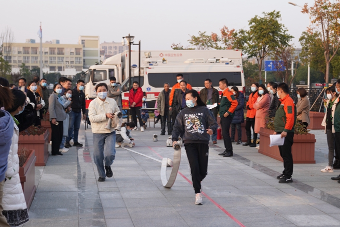在活动现场,消防人员为大家讲解了灭火器、灭火毯、消防水带的正确使用方法和注意事项,演示了干粉灭火器灭火、消防水带连接等消防器材的实操技能。随后各组参赛队员分别进行了器材灭火、水带连接、知识答题的比拼,决出了一等奖6名,二等奖6名,三等奖6名,竞赛奖20名,参与奖100余名,现场寓教于乐效果显著。