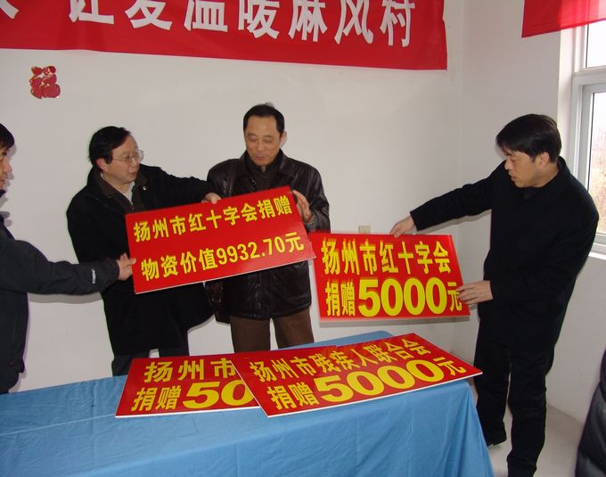 元月29日是2012年“世界防治麻风病日”,2012年1月18日,扬州市政府副市长董玉海率领市卫生局、红十字会、残联、疾控中心等相关部门领导,来到邗江区皮肤病防治院麻风康复村,向麻风病休养员、麻风病防治工作者表示节日祝贺和亲切慰问,并给他们送去慰问金及食品、衣物等生活必需品,让麻风病休养员充分感受到政府和社会的关爱。