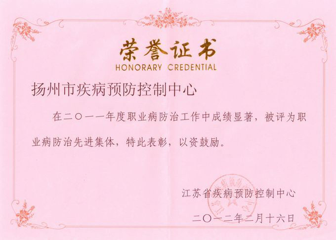 近年来,本中心在上级领导和相关部门的高度重视和大力支持下,不断强化职业病防治法律意识,努力提升职业病防治工作的质量和水平,自2007年起,本中心已连续五年被省疾控中心表彰为全省职业病防治工作综合先进集体。