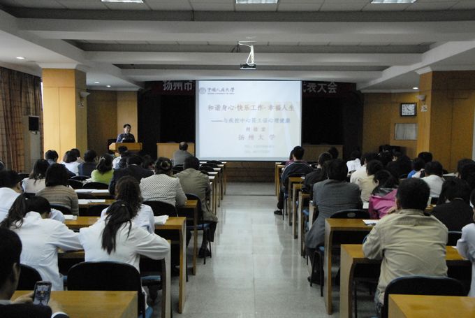 10月18日,扬州市疾控中心组织100余名职工开展健康心理讲座,特邀扬州大学何桂宏教授讲课。