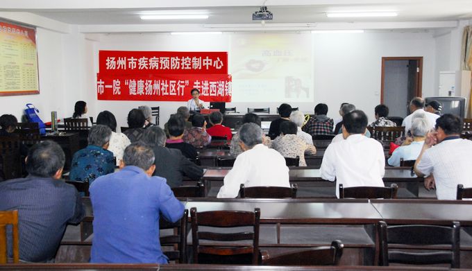 5月13日上午,扬州市疾控中心、市卫生监督所和市第一人民医院组织防病、健教、医疗卫生等8名专家走进了西湖镇司徒村,开展以心血管知识、夏季食品安全常识等为重点的“健康扬州社区行”知识讲座和现场咨询义诊活动,扬州市第一人民医院心血管科专家孙晓宁主任在该村二楼健康教育活动室做了题为预防高血压防治专题知识讲座,向社区群众讲解以老年人为主要对象的心血管病防治知识。市疾控中心还选派了医学检验中心专家为70多名村民提供了免费血糖检测服务,并于当天下午及时将血糖检查结果送到村民的手中。