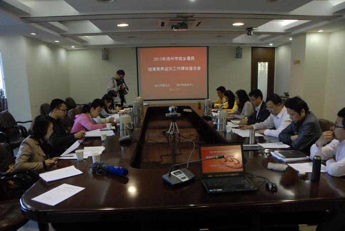 会上市疾控中心专业人员介绍了2013年健康素养监测结果以及健康素养干预工作开展情况。2013年扬州市城乡居民健康素养为15.6%,高于全省平均水平,位于全省第七。媒体记者与市爱卫办领导及市疾控中心专业人员就健康素养工作进行了交流和沟通。