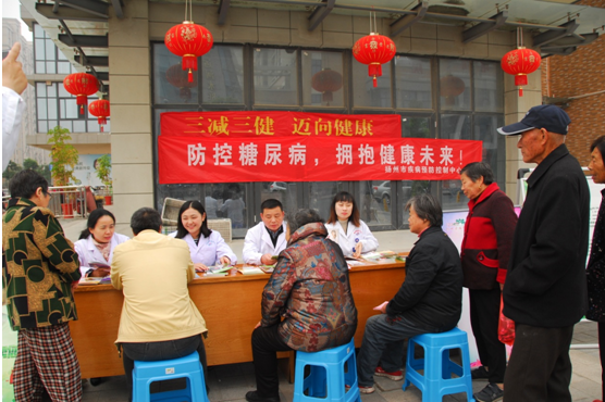 11月14日,市疾控中心组织市“12320”卫生热线、广陵区疾控中心、邗江区疾控中心和开发区疾控中心的11名慢病专家走进广陵区运河水榭社区,开展第11届联合国糖尿病日健康宣传活动。