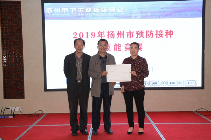 10月18日,2019年扬州市预防接种技能竞赛在广陵区萃园城市酒店举行。按照竞赛方案,全市7个县(市、区)和2个功能区派出9个团队共45人参加了比赛。最终,广陵区等6个代表队分获团体一、二、三等奖;宝应县安宜镇社区卫生服务中心潘兰华等共26名同志分获个人一、二、三等奖和“扬州市预防接种岗位能手”称号。