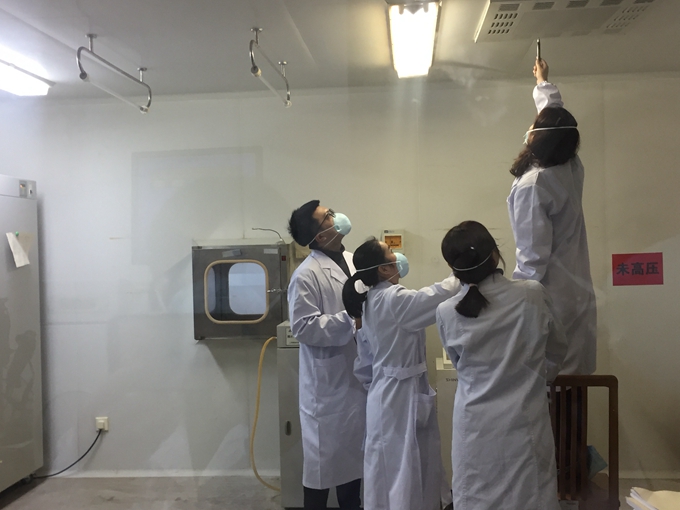 调查组首先对定点医院感染控制环境工程建设情况开展调查,分别对医院门诊部、病房、实验室的通风、紫外线灯灭菌效果进行了现场测量,就结核病门诊及留痰处的位置设置、相关设备的摆放提出了建设性的意见,同时调查组对个人防护现状进行了现场评价,针对专业防护口罩的选择及佩戴等与定点医院医护人员进行了交流。环境工程现场查看后,检查组通过查阅台账资料对定点医院结核病感染控制的组织管理工作进行了现场评价。