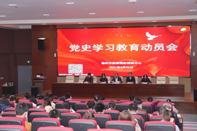 3月29日下午,扬州市疾病预防控制中心召开党史学习教育动员大会,深入学习贯彻习近平总书记关于党史学习教育的重要讲话精神,认真贯彻落实党中央《关于在全党开展党史学习教育的通知》精神,全面落实省委、市委、委党委关于党史学习教育的工作要求,扎实开展好疾控中心党史学习教育,安排部署中心党史学习教育,引导中心党员干部学史明理、学史增信、学史崇德、学史力行。中心领导班子出席会议,全体干部职工200余人参加会议。动员大会由中心主任周信同志主持。