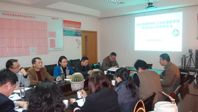 会上,项目责任单位分别对项目点工作进展情况进行了汇报,并对下一步的工作安排进行了发言。县疾控中心专业人员就2014年项目成果进行了展示,并针对2015年上消化道项目直报平台运用及项目开展过程中发现的问题提出了解决的建议。最后,县卫生局副局长鲁加香就项目能够有序开展提出了三点要求:一是加强宣传,树立典型,有效发动40—69岁人群组积极参与以提高筛查率;二是加强培训,严格操作流程,做好质控以提高早诊率;三是加强项目资金管理,做到专款专用。