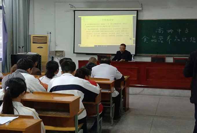 “食物多样,谷类为主;吃动平衡,健康体重;多吃蔬菜、奶类、大豆;适量吃鱼、禽、蛋、瘦肉;“五毛”零食有哪些危害?……”,10月26日下午,一堂别开生面的“营养膳食”健康小课堂在高邮中等专业学校举行。来自高邮市疾控中心的营养膳食专家孙翔医师以图文并茂的形式为近100名师生和食堂从业人员解读了《中国居民膳食指南(2016)》,并用生动有趣的实例让大家了解食物和营养的构成,普及了三餐合理,规律进餐等营养膳食配餐知识,达到营养均衡,并从专业的角度推荐了“食物多样,谷类为主”等营养膳食的6条核心知识。在随后的“营养膳食知识你问我答”互动环节中,现场师生和食堂从业人员频频举手,抢答踊跃,场面热烈,受到了大家的一致欢迎。同时积极引导学生们把今天学到的知识分享给爷爷奶奶爸爸妈妈,推动校园、家庭、社会多位一体自觉优化食物结构,崇尚健康饮食文化,践行吃动平衡理念,养成科学的膳食习惯的良好氛围。