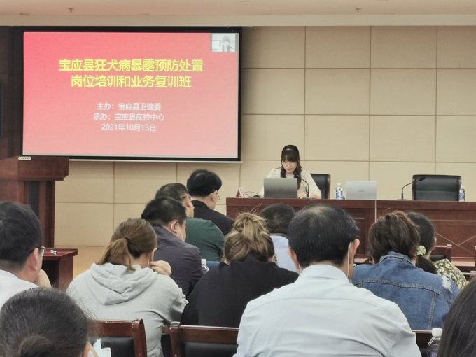 为提高我县狂犬病暴露预防处置能力,规范开展狂犬病暴露预防处置工作,2021年10月13日,宝应县卫健委在宝应县疾控中心举办了狂犬病暴露预防处置岗位培训和复训班,全县14家狂犬病暴露预防处置门诊的80余名医护工作人员参加培训,并在培训后接受考核。