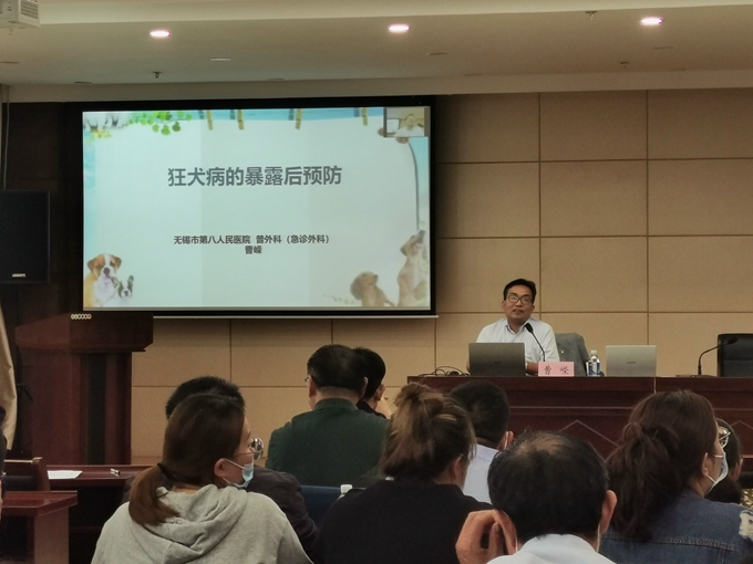 本次培训,邀请无锡市第八人民医院急诊外科主任曹嵘主任就狂犬病预防控制指南进行了讲解,滨海县人民医院急诊外科主任李如华现场解读了《狂犬病暴露预防处置工作规范(2016年版)》和《非新生儿破伤风诊疗规范(2016年版)》,原扬州市疾病预防控制中心主任、主任医师朱道建针对狂犬病流行病学特点进行了培训。培训中结合临床经典案例就狂犬病暴露处置中常见的问题以及处置措施进行了讲授,并提醒工作人员提高法律意识、做好风险管理,并对各业务工作人员就实际工作中遇到的疑难问题进行了答疑。