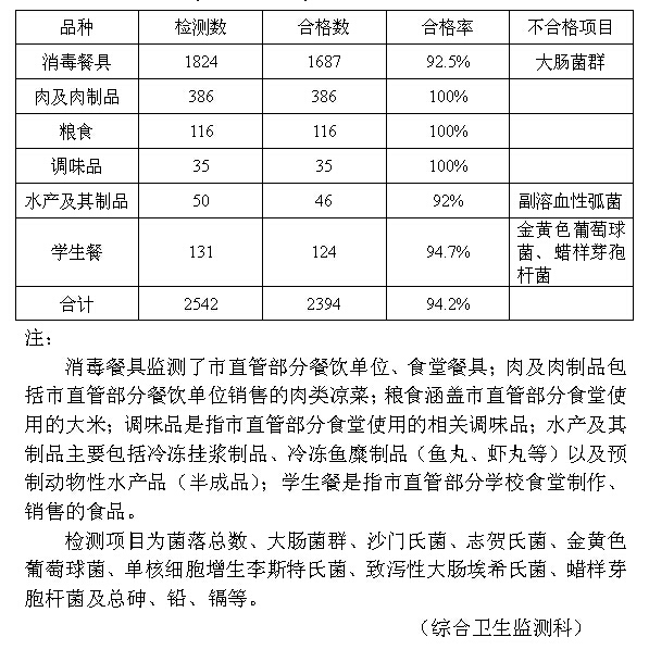 2014年扬州市食品安全卫生监测质量年报