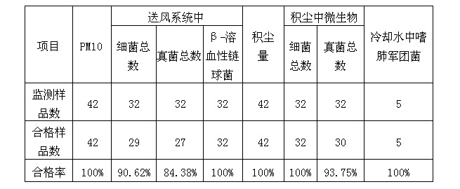 今年上半年集中空调抽样监测16家单位,共监测32个点,监测项目共8项,单位合格率为62.5%。不合格项目主要为:送风系统中细菌总数、真菌总数及积尘中真菌总数;与去年监测结果(42.9%)相比,合格率有一定程度提高。监测结果表明:本市公共场所集中空调卫生监测合格率较去年虽有所提高,但仍存在卫生安全隐患。由于集中空调系统运行工艺、检修维保工程比较复杂,多数单位仅能定期对风口进行清洗消毒,不能从根本上改变集中通风系统内的卫生状况。市疾控中心建议:使用集中空调的公共场所经营者每年应主动定期,特别是使用高峰来临之前,对集中空调进行清洗、消毒、卫生监测,以确保公共场所室内环境空气质量达标。