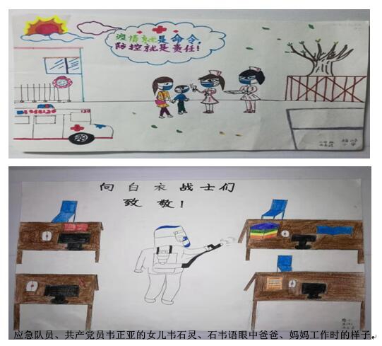 3363 谈起家里的熊孩子,疾控人以前的话风是这样的:“我家那小子,真不让我省心,这不,老师又打电话来了,说上课又调皮捣蛋了。”“我家那闺女呀,我跟她琴棋书画,她跟我华懋、京华城、吾悦广场。”可是这突如其来的战“疫”开始以后,疾控人惊奇地发现他们的熊孩子竟然一改往日的顽皮,在家搞起了艺术创作,就连爷爷、奶奶、公公、婆婆也成了他们的摄影助理、特约审稿人,他们将自己的抗“疫”“熊”心展现在视频里、绘画中、作文里,而他们的爸爸妈妈似乎正是这些艺术创作中的主人翁……