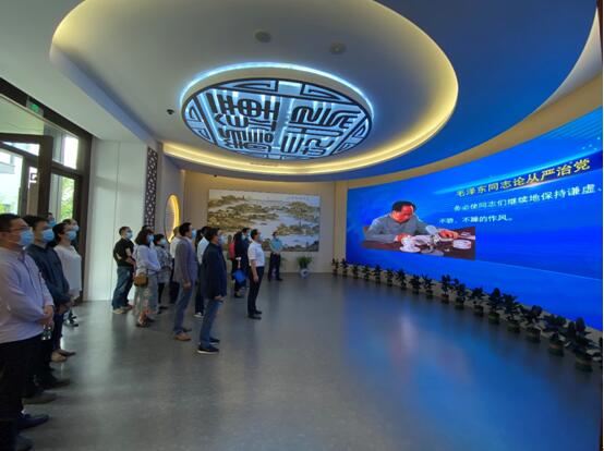 新建成的扬州市警示教育基地占地面积达1169平方米,全体同志依次参观序厅、“强音•全面从严”、“重拳•正风反腐”、“唤醒•明案鉴心”、“笃行•行稳致远”以及尾厅等六个展厅,通过图文、影音、情景再现等现代技术手段,展览通过案例分析、原因剖析向大家描绘了违纪违法人员从理想信念的坍塌到堕落蜕变的人生轨迹;系统梳理了十八大以来全面从严治党的创新实践和反腐败斗争的丰硕成果,推进不敢腐、不能腐、不想腐的特色做法和有益经验。参观结束前,面对鲜红的党旗,全体党员干部重温了入党誓词,以铿锵坚定的声音再次做出庄严承诺,牢记共产党员的初心和使命。