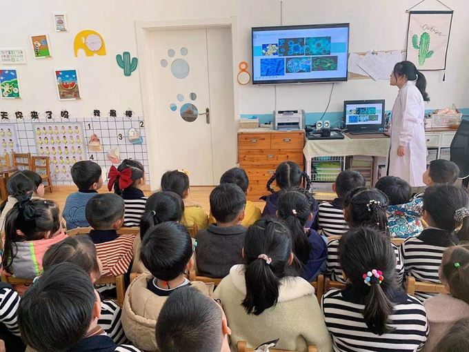4月7日上午,宝应县疾控中心组织健教科人员赴开发区幼儿园开展了一堂卫生知识科普讲座,讲座通过图文并茂的方式向小朋友们介绍了细菌、病毒的一些基本小知识,通过一个洗手前后的菌落总数小实验直观的展示了洗手前后手部细菌的变化告知了他们饭前便后洗手的重要性与必要性,随后该中心人员与幼儿园老师一起向小朋友们演示了七步洗手法;最后,通过使用简易的显微镜模型向小朋友们介绍了显微镜的使用方法,并现场演示邀请小朋友们上台观看与操作,极大地调动了小朋友们的积极性,现场气氛一度热烈。