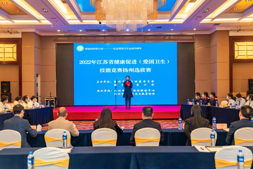 5816 为贯彻落实《市政府关于印发<全面推进健康扬州建设实施方案>的通知》精神,积极推进健康知识普及行动,大力弘扬爱国卫生优良传统,持续提升健康教育专业人员的理论水平和业务能力,有效激励医务人员主动提供健康科普服务,10月28日,由扬州市卫生健康委、扬州市总工会联合主办,扬州市疾病预防控制中心、扬州市健康促进与教育协会承办的2022年健康促进(爱国卫生)技能竞赛扬州选拔赛顺利举行。市总工会副主席洪慧娟、市卫健委四级调研员盛富山、市疾控中心党总支书记陆盛华、市疾控中心副主任徐勤等出席了本次竞赛活动。